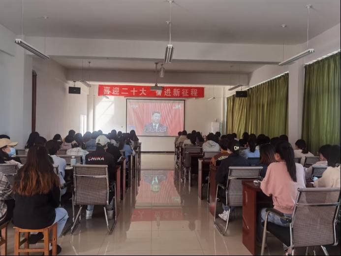 广大青年要坚定不移听党话、跟党走,怀抱梦想又脚踏实地,敢想敢为又善作善成,立志做有理想、敢担当、能吃苦、肯奋斗的新时代好青年,让青春在全面建设社会主义现代化国家的火热实践中线经绚放绚丽之花。总书记的话为我们作为学生引路人的高校教师指明了方向,同时也对我们的青年学子寄予了殷切希望。学生党员刘淑慧在现场观看了二十大党开幕会后说道,“作为一名学生党员,我深知应该加强自身的专业知识 ,提高自身的素养 ,在日常的生活中,跟随党的脚步不断前行,继续努力。”