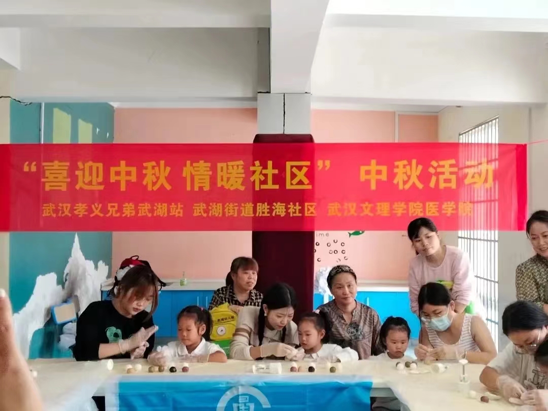 9月27日,在中秋佳节即将来临之际,yl6809永利集团师生携手武汉“孝义兄弟”社工中心到武湖街道胜海社区开展“喜迎中秋,情暖社区”--中秋月饼DIY志愿者服务活动。本次活动由yl6809永利集团分团委学生会志愿者工作部承办,分团委书记陈意老师带队16名学生参与。