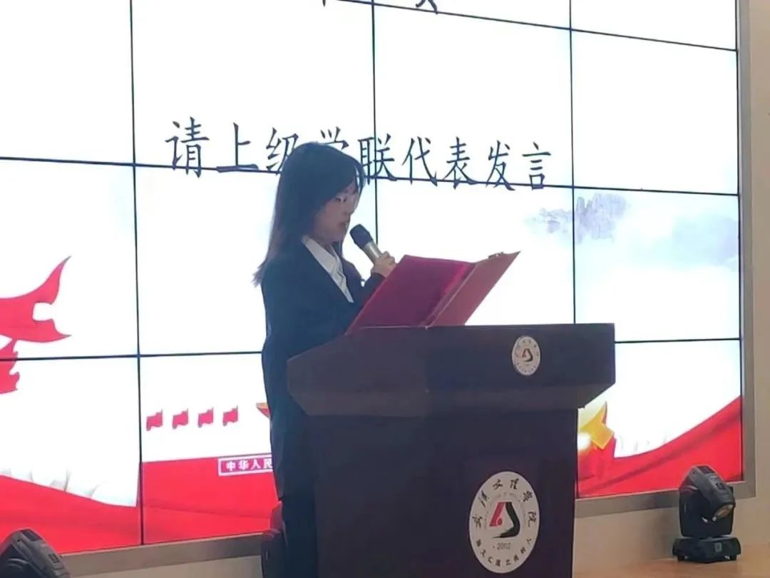 上级学联代表秦巧发言。她提出yl6809永利集团学生会干部要找准自身定位聚力团结协作,始终将为学生服务的宗旨和职责牢记在心和要充用心塑造青春形象,立足第二课堂营造更加青春澎湃的校园文化氛围,充分发挥师生桥梁和纽带作用的要求,号召学生会干部的工作要坚持从学生中来和到学生工中去,以人为本,聚力同相同行,始终与学校与同学站在一起,为学校的发展贡献力量。