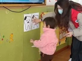 志愿者以小游戏的形式引出如何保护口腔健康等问题,小朋友们积极回答,营造了轻松有趣的口腔健康知识学习氛围。志愿者借用牙齿模型,牙齿图片和食物图片,向小朋友们讲解牙的基本结构、蛀牙的形成,传授如何正确刷牙,并亲手教小朋友们正确的刷牙步骤。志愿者分发画纸和蜡笔,教小朋友画牙齿和牙刷。小朋友们积极配合,画出了他们心目中的牙齿。