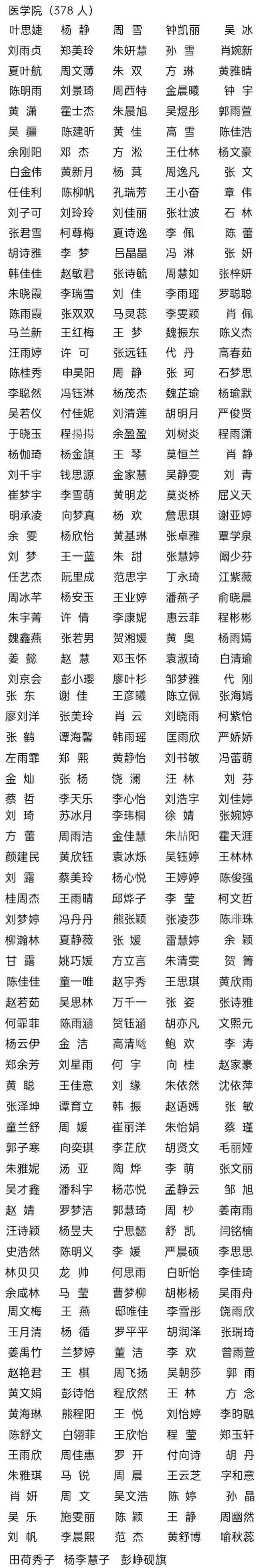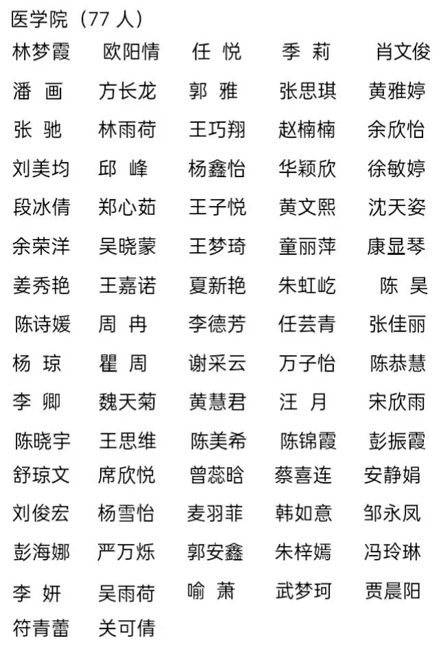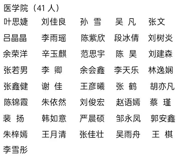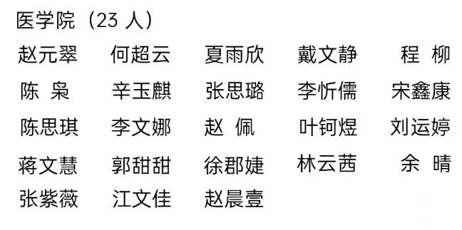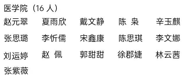 四、优秀学生干部标兵(70 人)