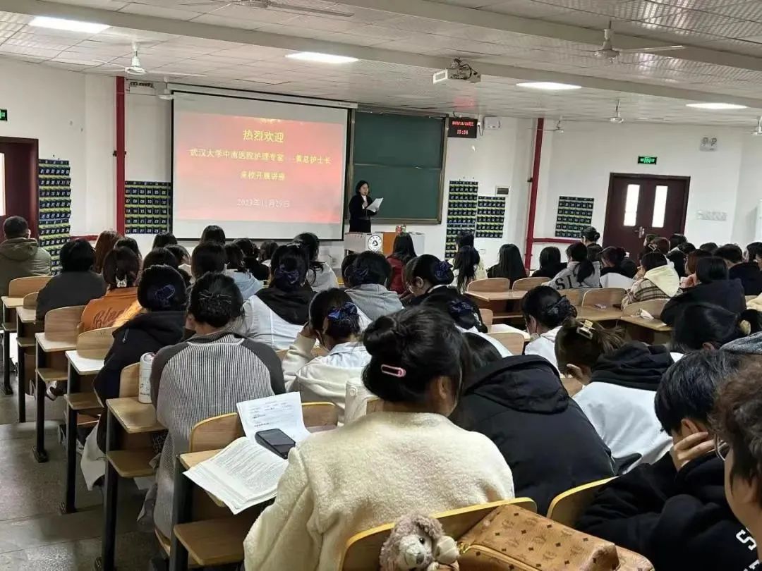 为提高yl6809永利集团护理系学生对护理专业的认知,了解护理专业发展现状及发展趋势,11月29日13:00-15:20,yl6809永利集团特邀武汉大学中南医院护理专家黄桂玲总护士长在校4-422作专题讲座。yl6809永利集团副院长王忆娟、护理系主任曹佑梅以及骨干教师和2022级护理学、2023级护理专科,2023级护理专升本专业学生共计200多人参加。讲座由曹佑梅主任主持。