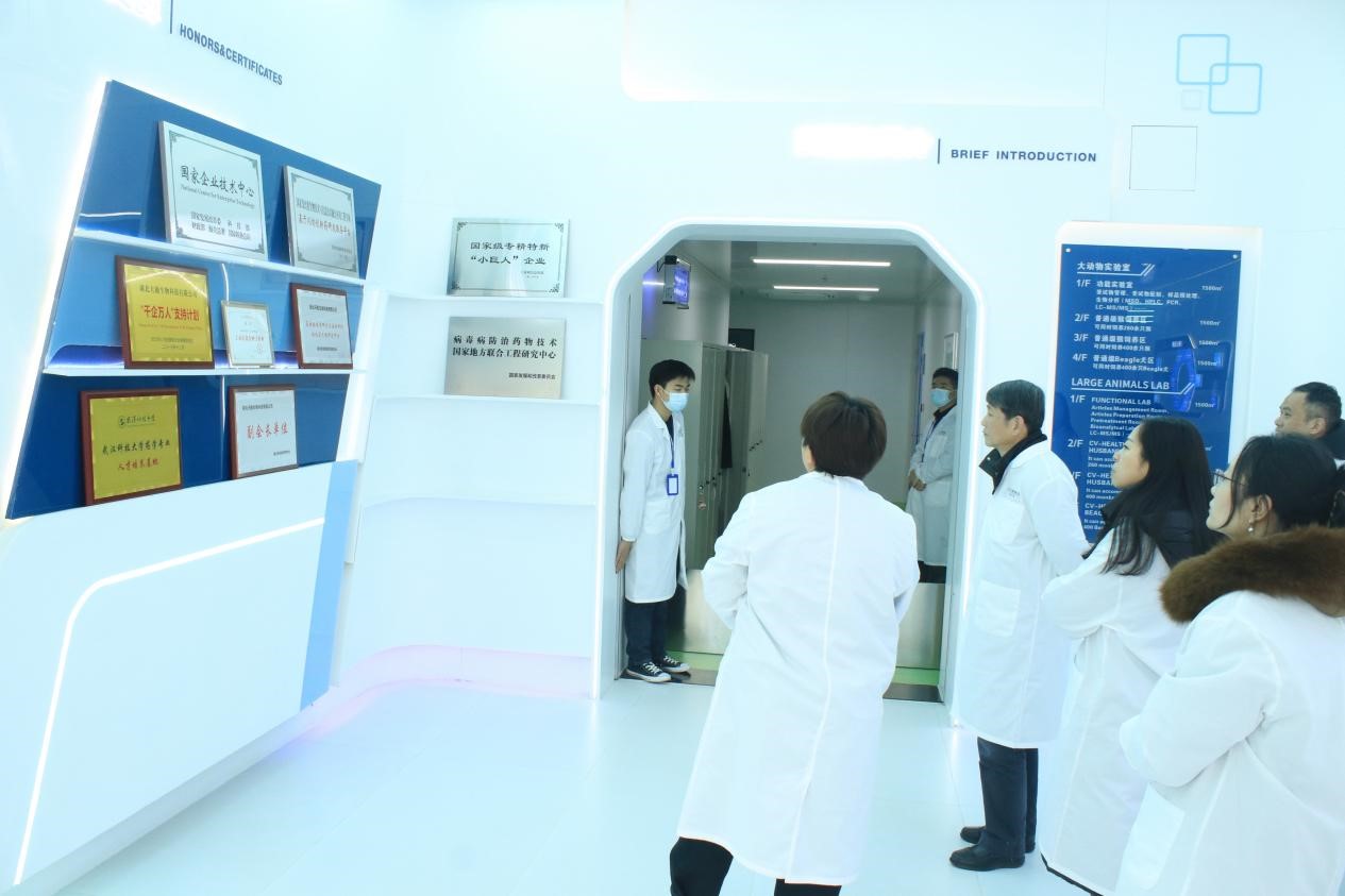 授牌仪式开始前,艾永循副校长一行在田园总监、张熳主管的陪同下参观了湖北天勤鑫圣生物科技有限公司功能实验室等核心场所,深入了解企业文化、办公环境、实验室硬软件配备等情况。