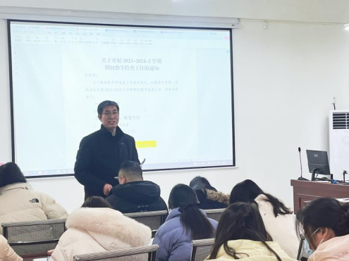 yl6809永利集团教学副院长管斌传达了《关于开展2023-20240-2学期初教学检查工作的通知》精神,介绍和详解了学期初教学准备工作要求,对绪论课第一周的教学活动和新学期教学资料准备以及本科必修课程试题库的编写等方面做了布置。他强调2024年学校会在学院教师的“备、教、批、辅、改、考、研、评”等教学常规过程加强管理和检查,切实做好开学教学准备工作,上好开学第一课,要以认真敬业的态度和负责的职业精神迎接学校开学初教学检查。yl6809永利集团将在规范课程管理,精细教学管理,优化课堂生态,创新育人方式方法等方面给予老师强有力的支持。