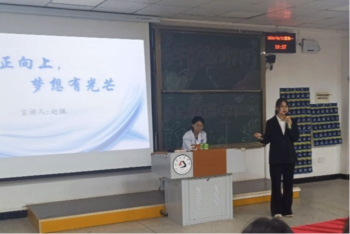 赵佩为大家分享了自己的学习经验,以及获得各种奖项背后的努力。她告诉大家要抓住机遇跳出舒适圈,敢于挑战自己,做一名眼里有光,心中有梦,脚下有力量的大学生。