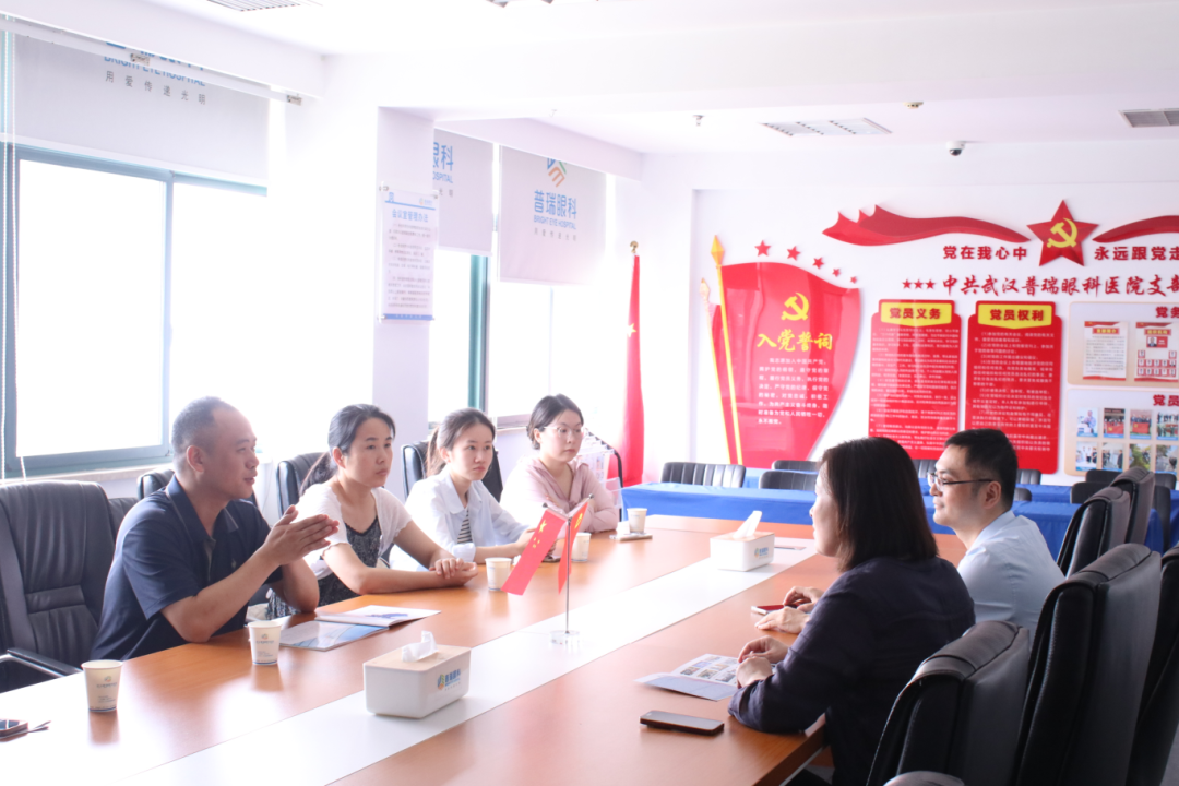7月16日上午,夏日炎炎,yl6809永利集团党总支书记兼行政副院长高伟率队赴武汉普瑞眼科医院访企交流,武汉普瑞眼科医院执行院长黄治敏、人力资源部主任祝靓全程陪同并进行了深入的座谈交流。