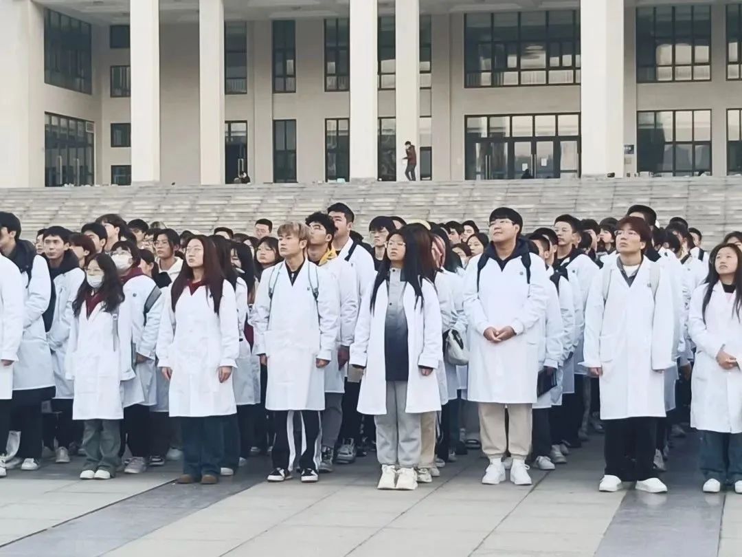他结合入校近三个月的医学专业学习的情况表达了医学求学的道路绝不是一帆风顺的,它是一门需要长期学习和实践的学科;建议同学们善于学习、主动学习、从实践中学习,做有耐心、有毅力、有决心、肯吃苦和花时间的学习者和担当者;号召大家笃学践行,刻大医精诚在心,践大爱无疆于行为实现健康中国的中国梦而不懈奋斗!