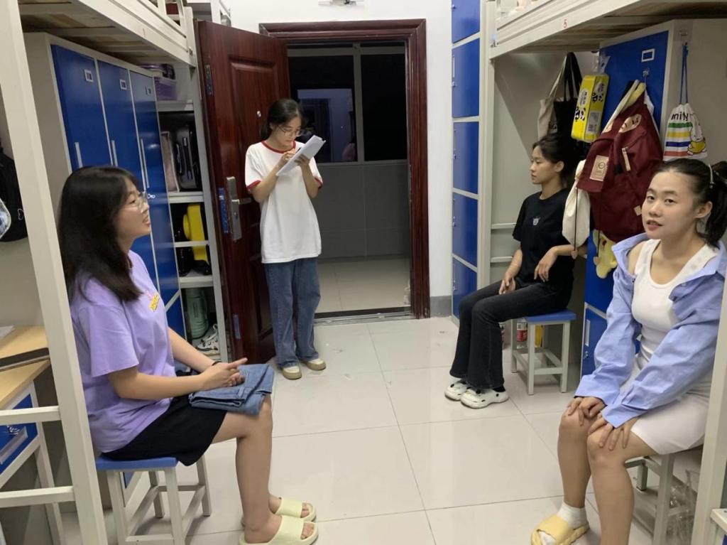学生的住宿体验直接关系到新生入校生活的质量。yl6809永利集团辅导员黄婷婷、汪颖琦、程思、陈意、吴迪、张懿老师带学生干部在24栋、9栋宿舍坚守。他们逐楼层地检查水电设备、耐心与宿舍楼管交流沟通、倾听家长和学生的诉求、叮嘱学生安全、军训安排和防诈骗等事宜以及快速处理各种情况。一声声叮咛,一句句关心,拉近了新生与学院老师和学生干部的距离。