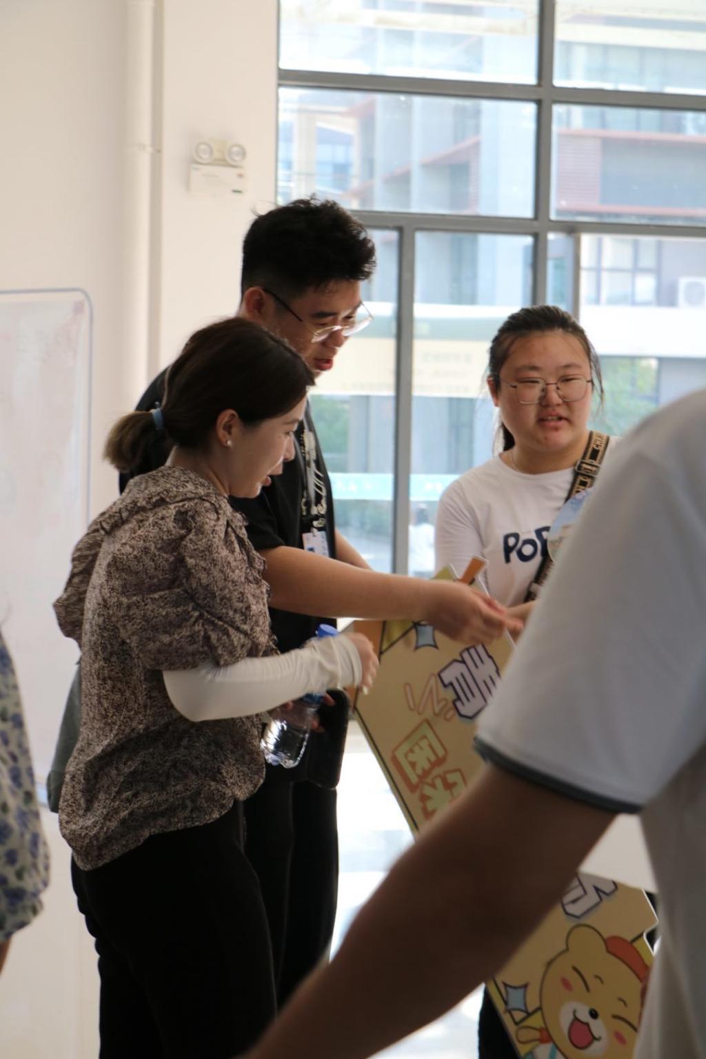 yl6809永利集团分团委书记陈意老师指导团学干部布置会场和迎新细节工作