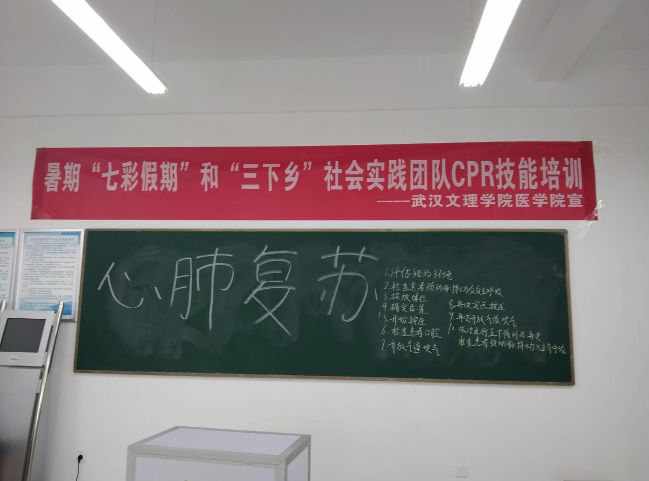 “第一篇章 一腔热血,医路前行”:6月13日,yl6809永利集团护理部喻莹老师为实践团队进行了实践急救知识理论培训,主要从中暑、心肺复苏(CPR)、海姆立克法急救法和AED的使用等进行讲解,让同学们对急救知识的掌握更加牢固,以此能够更好的为当地居民宣讲急救常识,同时为实践过程中有可能出现的突发情况做好应急准备工作。
