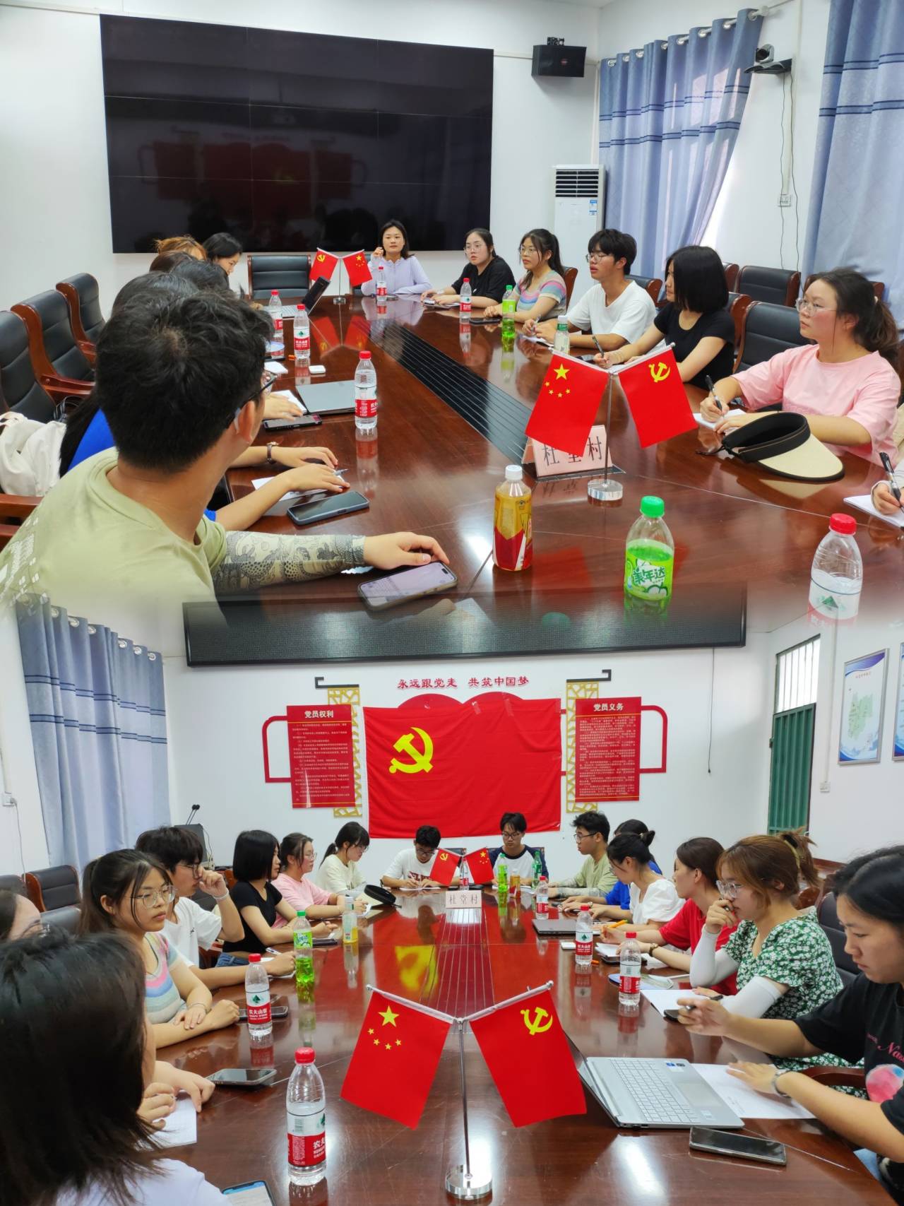 “第七篇章 总结”:7月1号上午实践团队在杜堂村村委会的会议室开展了此次实践活动的总结会,在为期七天的实践过程中,总结似乎成了团队之间的默契,每天完成实践内容之后,都会以小组的形式开展总结,总结发现的问题、遇到的困难、当地人的健康需求、实践路上的趣事等,不免让团队开展实践的路更加清晰明确。下午,yl6809永利集团党总支书记兼行政副院长高伟老师来到了实践地点,听取了实践团队近期工作汇报,向实践团队的工作进行了指导,以及向团队表达了最真挚的问候。