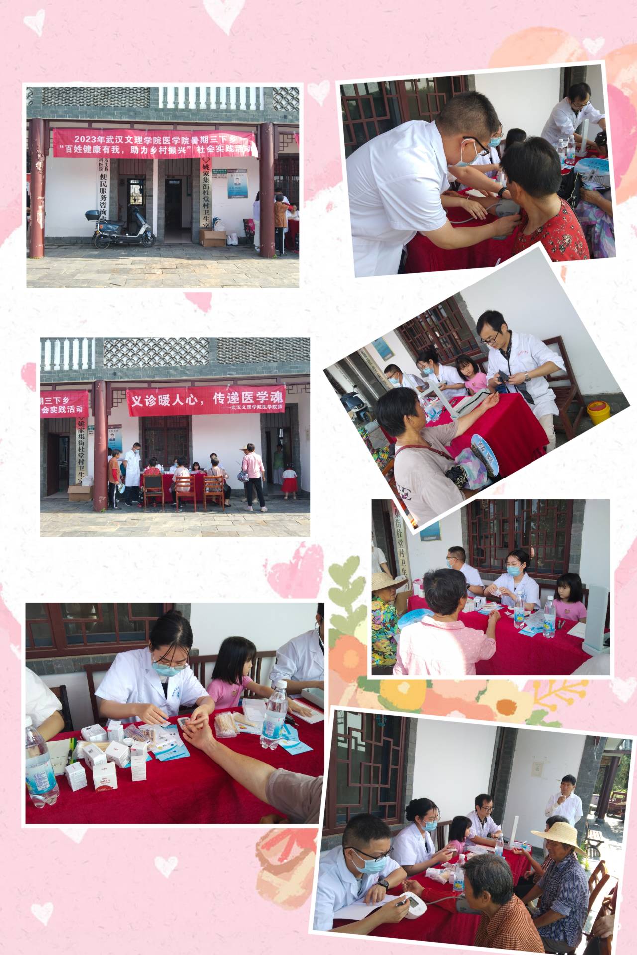 “千里之行,始于足下”,实践过程中也不都是一帆风顺的,历经了很多困难,团队成员一起齐心协力,出色的完成了一项又一项任务,短暂而又充实的暑期社会实践活动即将结束,同学们在此期间所累积的经验则是人生最宝贵的财富。社会实践是引导青年学生走出校门、步入社会、并投身社会的良好形势,作为当代大学生势必要抓住培养锻炼才敢的机会,提升自我服务社会的思想与意识。同时,要树立远大的理想,明确自己的目标,为祖国的发展贡献一份自己的力量。在活动最后实践团队与杜堂村村委会建立长久联系与合作、为后续继续推进乡村振兴,健康中国贡献自己的青春力量,秉承医学本心,以心医心,以爱传爱,至善至美。