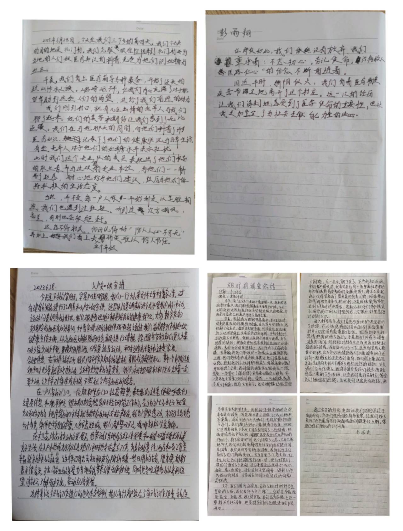 在活动进行的过程中,团队成员每天都会写实践日记,对一天的活动进行总结,记录了活动具体内容和开展情况、遇到的困难,以及心得体会,这对大家去了解基层群众,更好的走进群众有着非常重要的意义,并有利于促进团队成员之间对于工作的交流,同时,这也将成为一段不可磨灭的回忆,它会以文字、图片等的形式被永远保存。