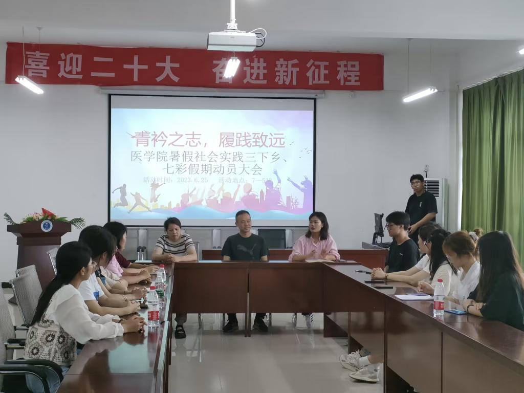 会议上三下乡团队负责人对本次实践活动的开展做实践计划汇报,同时,高书记对此次实践活动提出了严格的要求和出征前寄语—要围绕健康中国建设,广泛开展健康普查、基本医疗卫生知识普及和紧急救护知识培训,不忘初心,牢记使命,尽自己最大的努力助力乡村的发展,实现自身价值,严格执行实践纪律,保证自身安全。最后,张玉芬老师对各团队成员再次明确目标要求,要做到统一思想,提高团队凝聚力;合理分工,确保工作顺利进行;强化质量意识,保证实践活动质量;注重自身安全,杜绝发生安全事故。