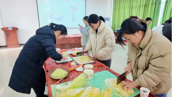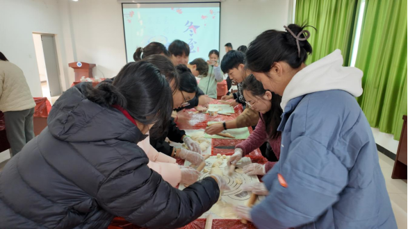 热闹氛围带动着每一个人的情绪,在老师的带领下,大家相互学习、相互请教,在共同努力下,一个个饱满的饺子铺满了整个桌面,欢声笑语在屋内回荡,让这个冬至充满了家的温馨与欢乐。
