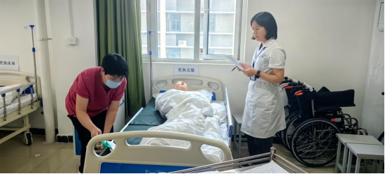 考核现场,yl6809永利集团院长艾永循、党总支书记兼行政副院长高伟、副院长王忆娟、综合办公室主任凃君等巡视督导。艾永循强调护理员培训考核要严格对标省级标准,从操作规范性、临床思维、人文素养、应急反应等方面对学员的临床实操进行细致地考量和打分,确保护理员培训考核工作的公平、公正与科学。