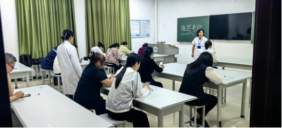 8:30-10:00,线上理论考试在校6-106、6-103有序进行。学员在考评团队的监督下,单人单座、独立完成客观题考试,其内容涵盖职业道德、基础知识、生活照护、基本照护、临床照护、心理支持及功能锻炼,