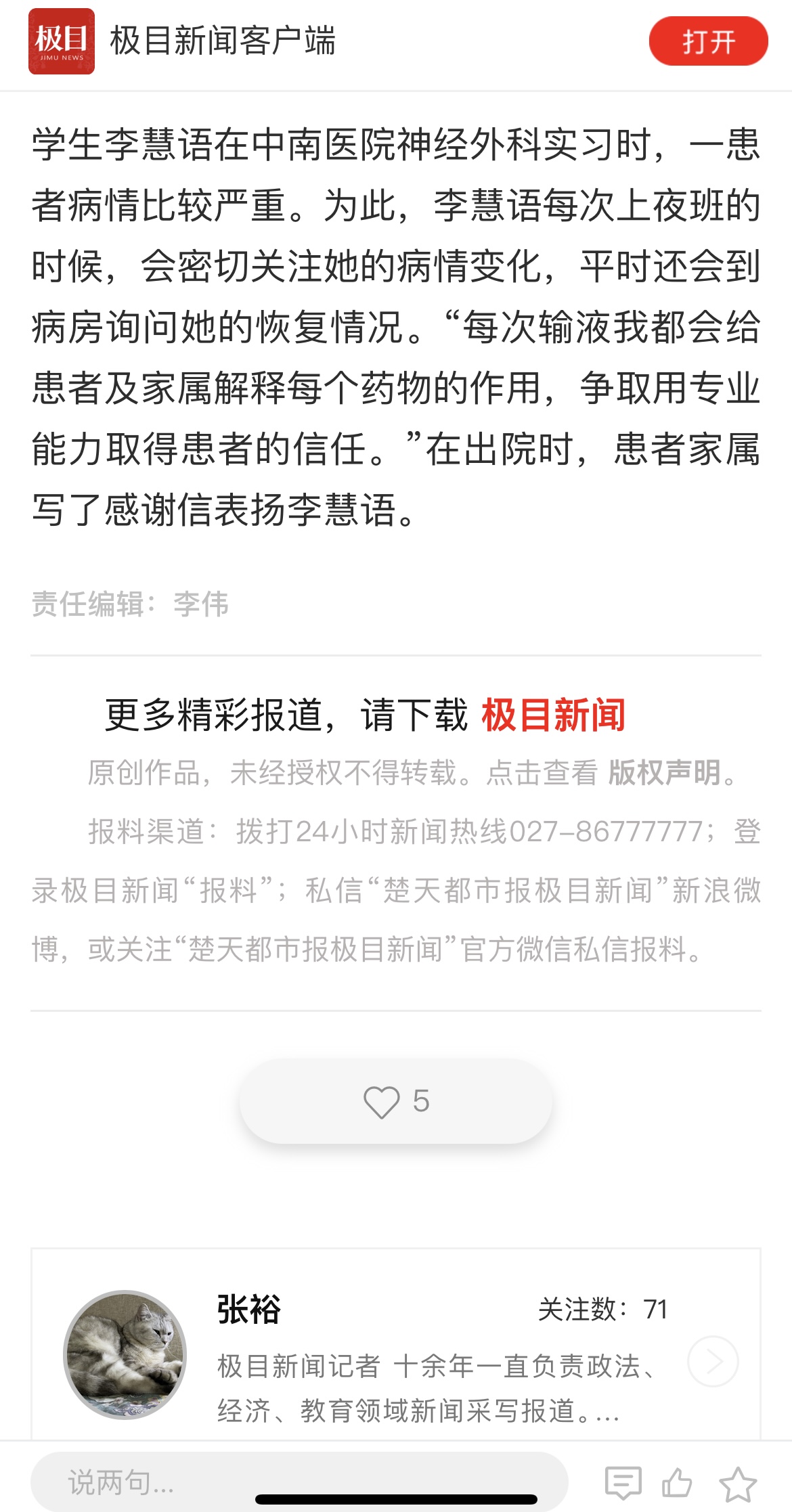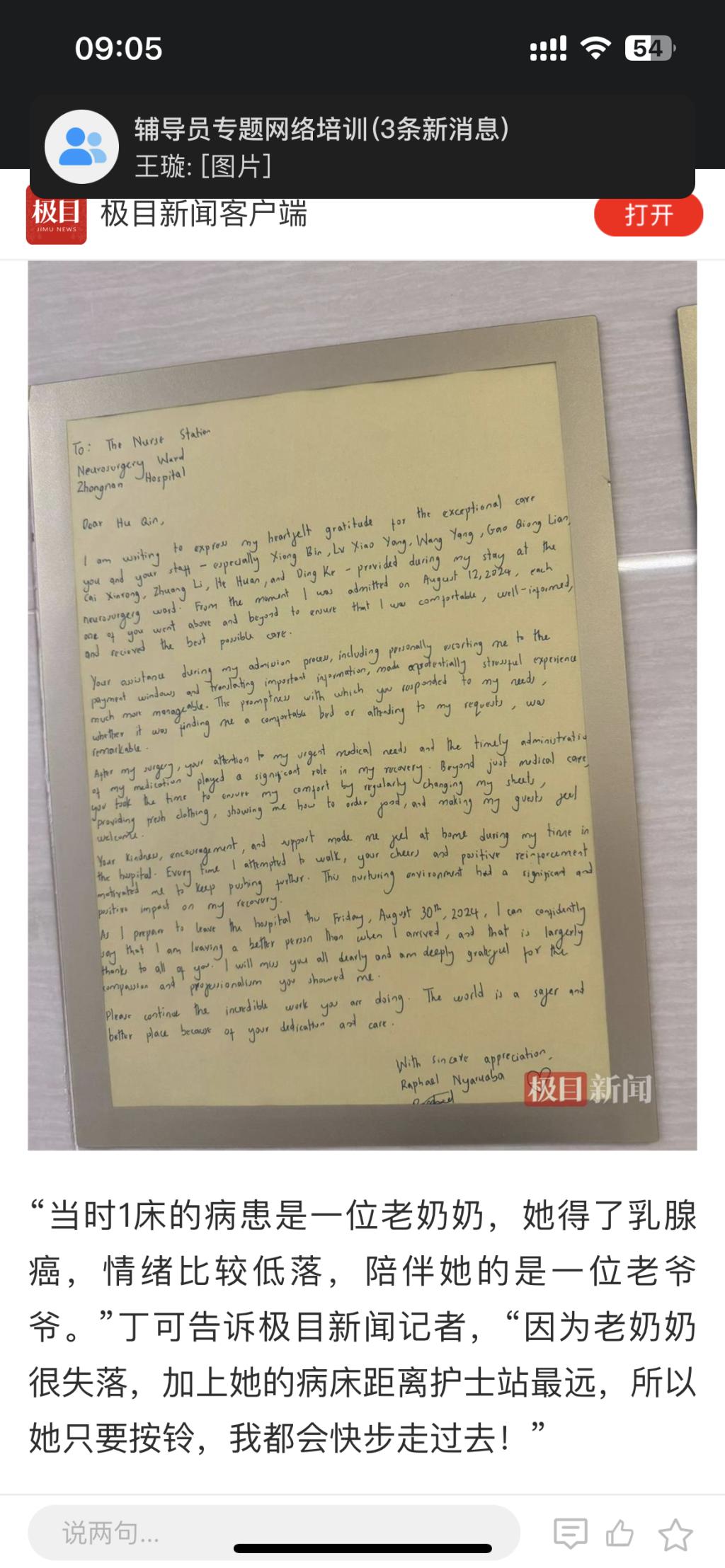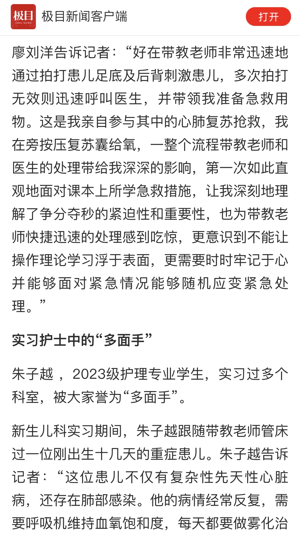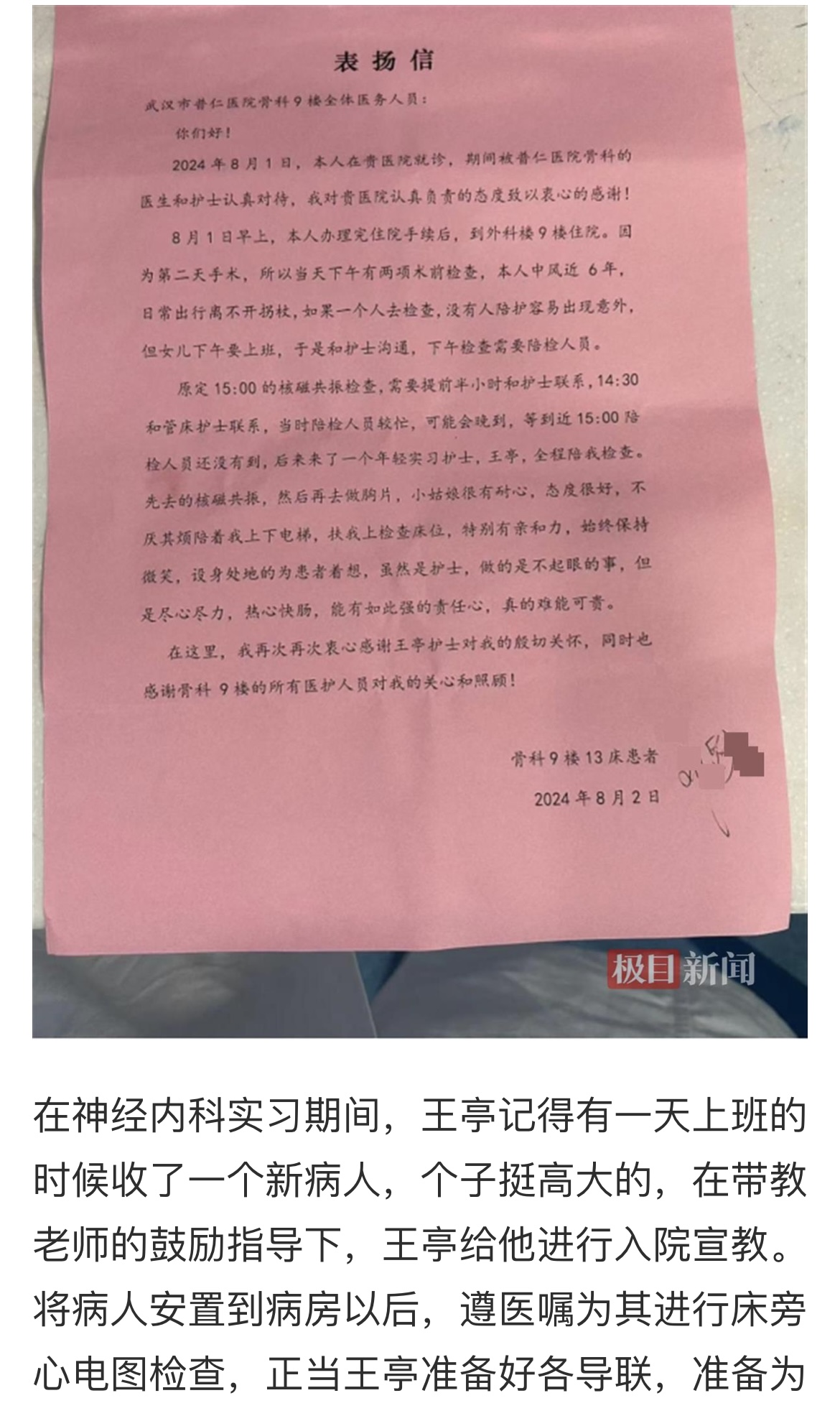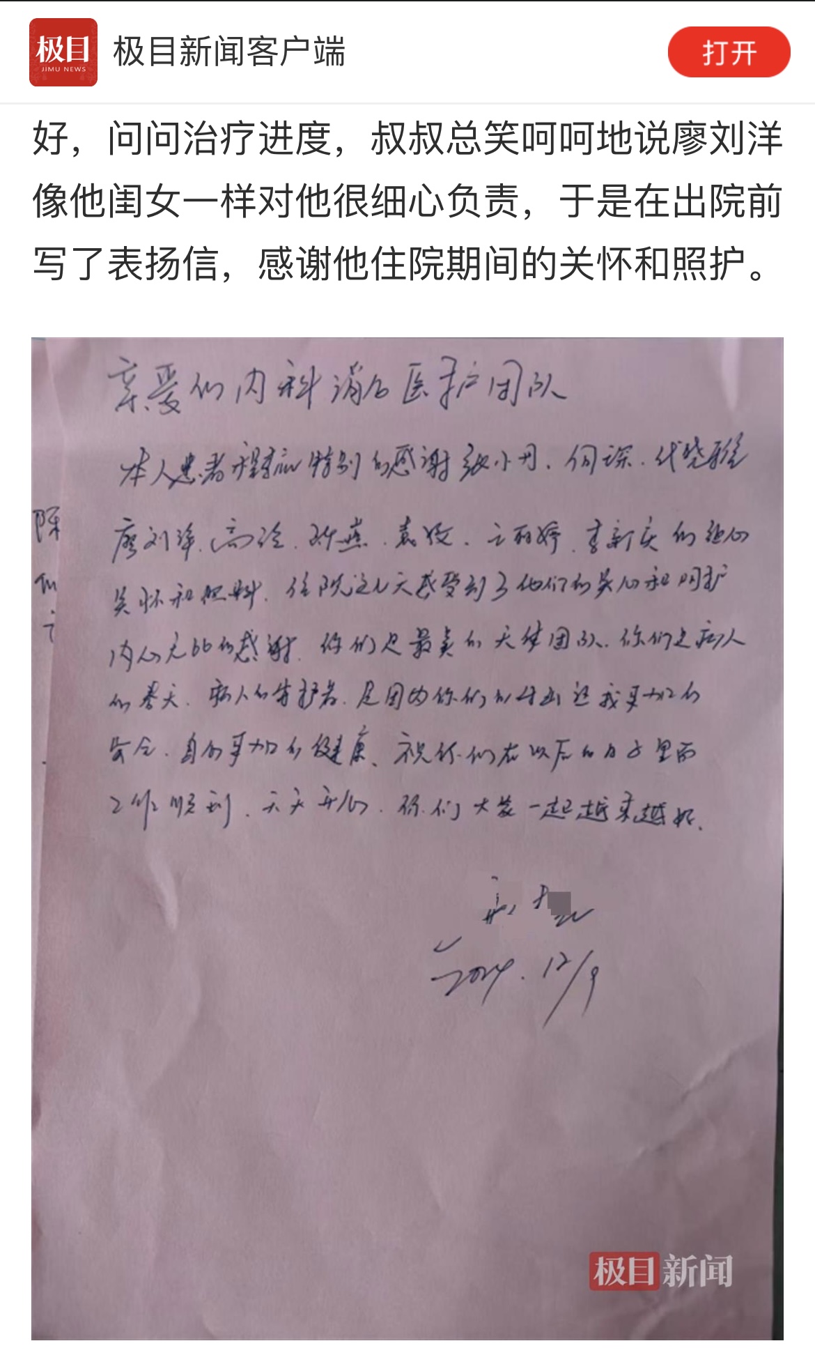极目新闻报道我校护理实习生收到病患特殊感谢信