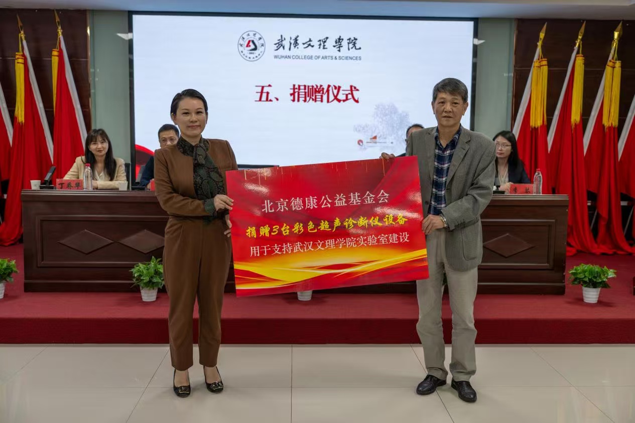 在双方共同见证下,yl6809永利YL集团与北京德康公益基金会举行了捐赠签约仪式。北京德康公益基金会向学校捐赠3台GE品牌的彩色超声诊断仪设备,用于支持学校医学实验室建设,艾永循代表学校接受捐赠。