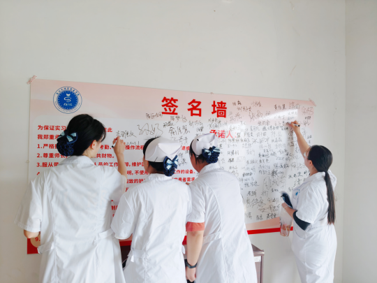 会前,2023级护理专业学生在会场门口“开启护理人生道路第一站”签名墙上签名,签署实习承诺书