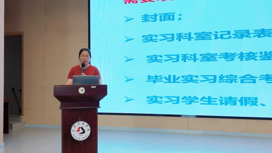 彭静华致辞,她强调了毕业临床实习的重要性和必要性,从专业学习、临床实践、职业素养等方面勉励同学们在实习中保持保持学习热情,将理论知识与实践紧密结合,不断提升专业技能,为未来的职业发展奠定坚实基础。