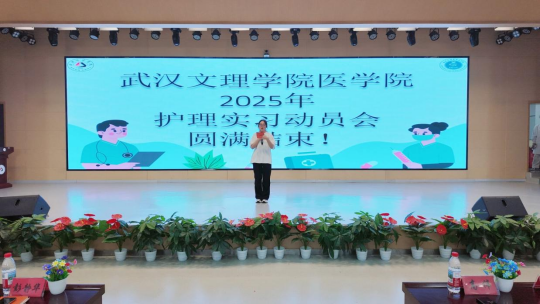 龚琛发言,她介绍了2022级护理学学生毕业实习的安排,通过流程图详解实习严格遵循“理论学习-临床见习-实践操作-反馈提升”的阶梯式培养模式,确保每位学生都能在实习中实现知识向能力的转化,她指出yl6809永利集团已与多家三甲医院及优质医疗机构建立深度合作,为学生提供了涵盖内科、外科、妇产科、儿科等全科室的实习岗位,保障实践教学的全面性与专业性,希望同学们能够珍惜平台,勇于实践,敬业爱岗,用专业成绩和良好的表现为未来职业发展打下坚实基础。