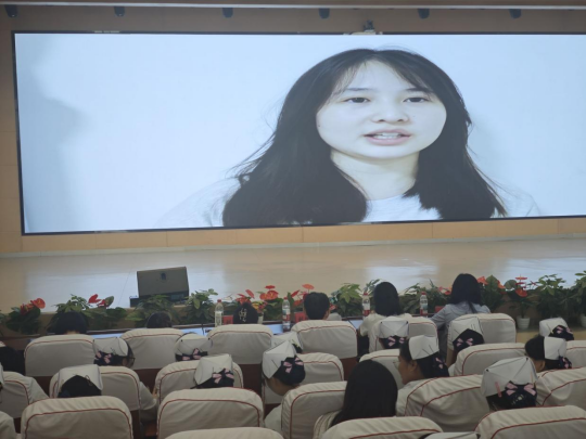 会上,优秀毕业生、2021级护理学专业学生谢佳、S2023级护理学专业学生朱子越通过视频连线分享实习经验。她们结合自身成长经历,生动讲述了实习中从生疏到熟练的心路历程,鼓励学弟学妹们珍惜实习机会,主动学习、勇于提问,在实践中不断突破自我。