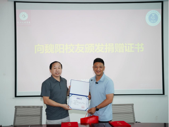 廖建刚向魏阳颁发捐赠证书