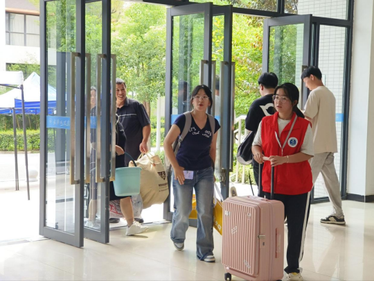 整个入学报到流程依托数字化手段提高效率,众多诸如寝室选择分配、学费缴费、生源地助学贷款回执认证等环节都提前在线上完成,新生在学院报到点确认录取资质、收取档案、加入班级群和专业群之后即可去宿舍办理入住,流程清晰简洁,各个环节衔接顺畅,极大缩短了排队等候时间,获得了新生和家长们的一致好评,纷纷表示孩子交给学校非常放心。