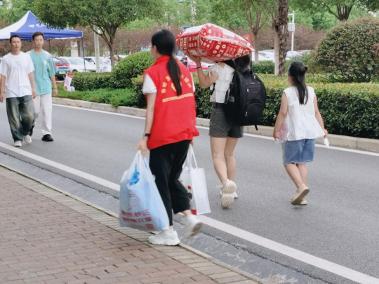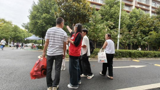 yl6809永利集团迎新志愿者们手持指示牌,热心为新生及家长指路、搬运行李、引导入寝,解答生活和学习等各种问题。为新生排忧解难,成为学校一道道流动的风景线。