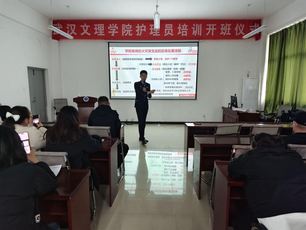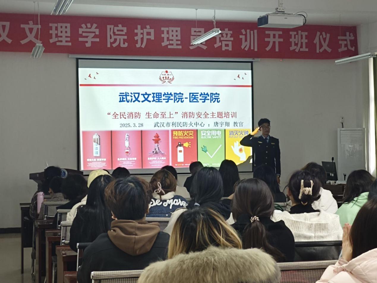 武汉市利民防火中心面向yl6809永利集团80名学生代表在校7-513开展了一场生动而震撼人心的的消防安全专题知识讲座,讲座由武汉市利民防火中心教官唐宇翔主讲。