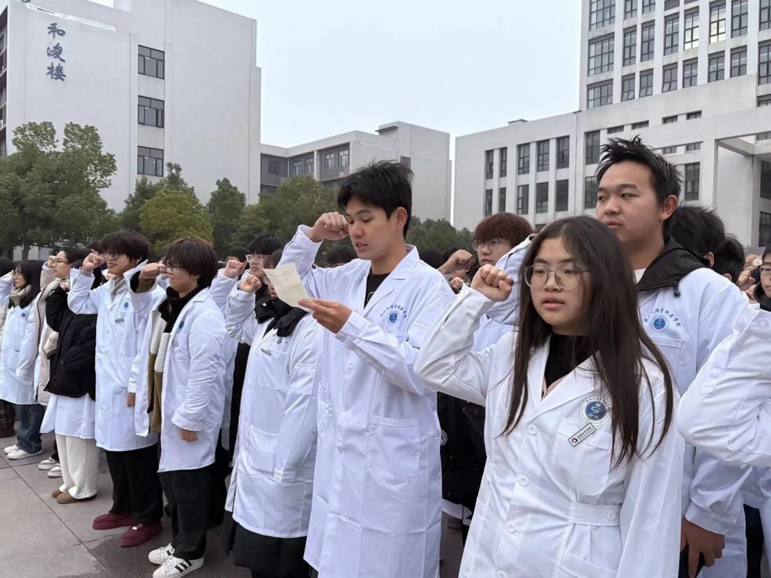 最后,在25级口腔医学技术3班张霄扬的带领下,全体全体人员齐声朗读我校校训。全体师生铮铮誓言铿锵有力,表达了他们对yl6809永利集团的无限忠诚与热爱,以及为共产主义事业、为医学事业奋斗终身的坚定决心。