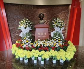 仪式最后,全体人员依次在纪念碑前敬献手中的菊花,瞻仰碑文,向为民族解放、国家独立和人民幸福英勇献身的革命先烈致以最崇高的敬意。
