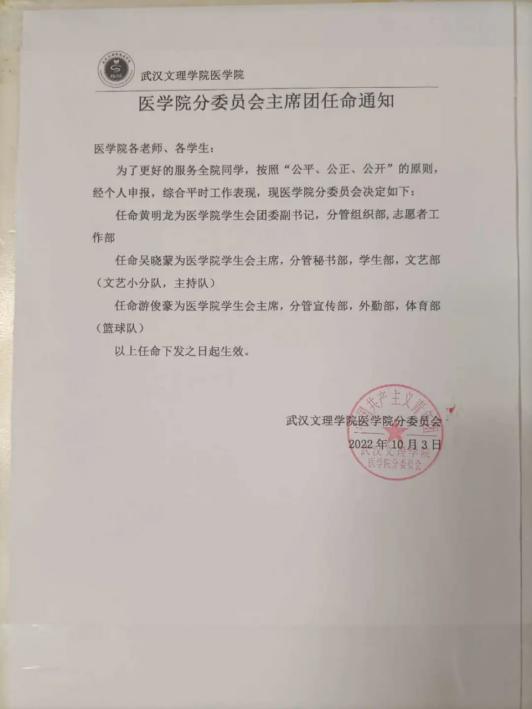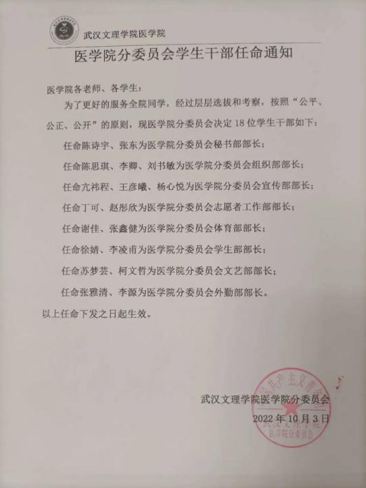 任命亢祎程、王彦曦、杨心悦为yl6809永利集团分委员会宣传部部长;