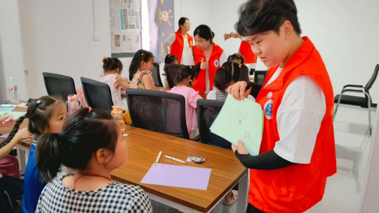 第二小队走进姚湖社区活动中心,为社区儿童开展“童心向阳”心理健康主题活动。队员们以《我的情绪小怪兽》等趣味绘图为载体,通过情绪扮演游戏,引导孩子们认识喜怒哀乐等情绪,学习用绘画表达感受、用深呼吸调节情绪。