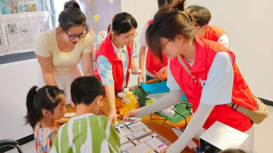 随后,实践队队员们带领小朋友一起跳拍手操,现场欢声一片,志愿服务深入民心。