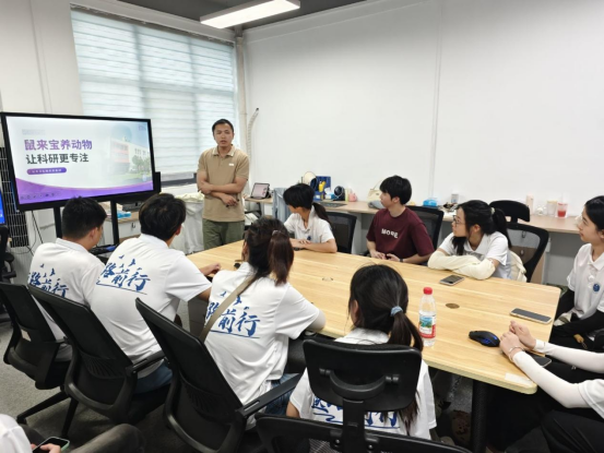 2025年7月11日下午,“医路前行”青年先锋实践队到鄂州葛店经开区东湖高新智慧城的鼠来宝(武汉)生物科技有限公司和守正弘药(武汉)生物科技有限公司参观学习。天鉴检测经理曹彩霞和守正弘药生产副总徐勇接待了实践队师生一行。
