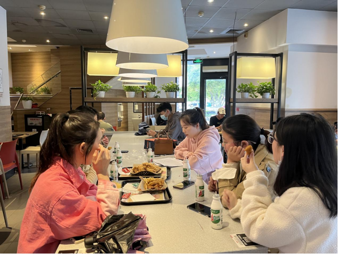 魏紫熙老师与学生共进午餐,并传授实习经验