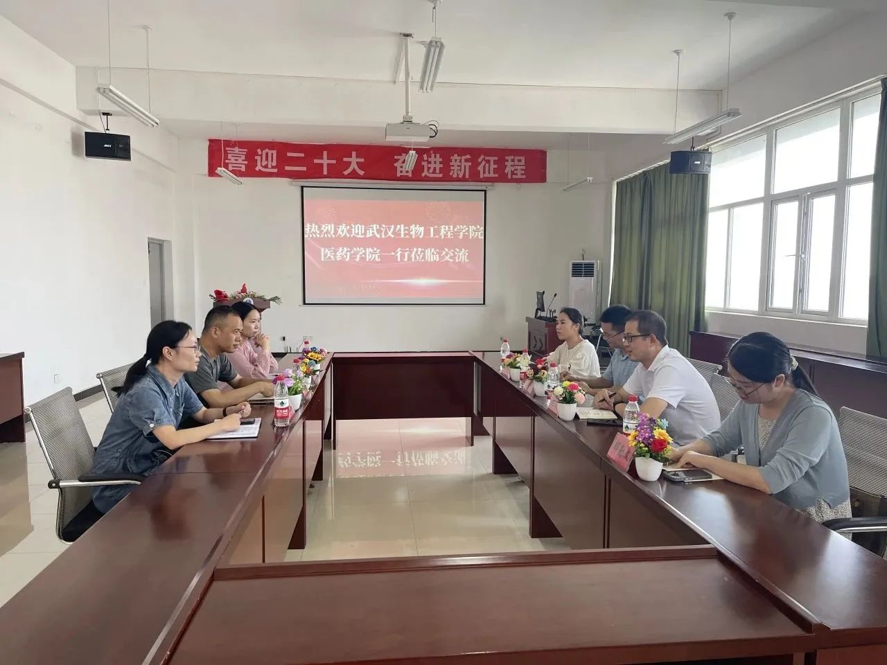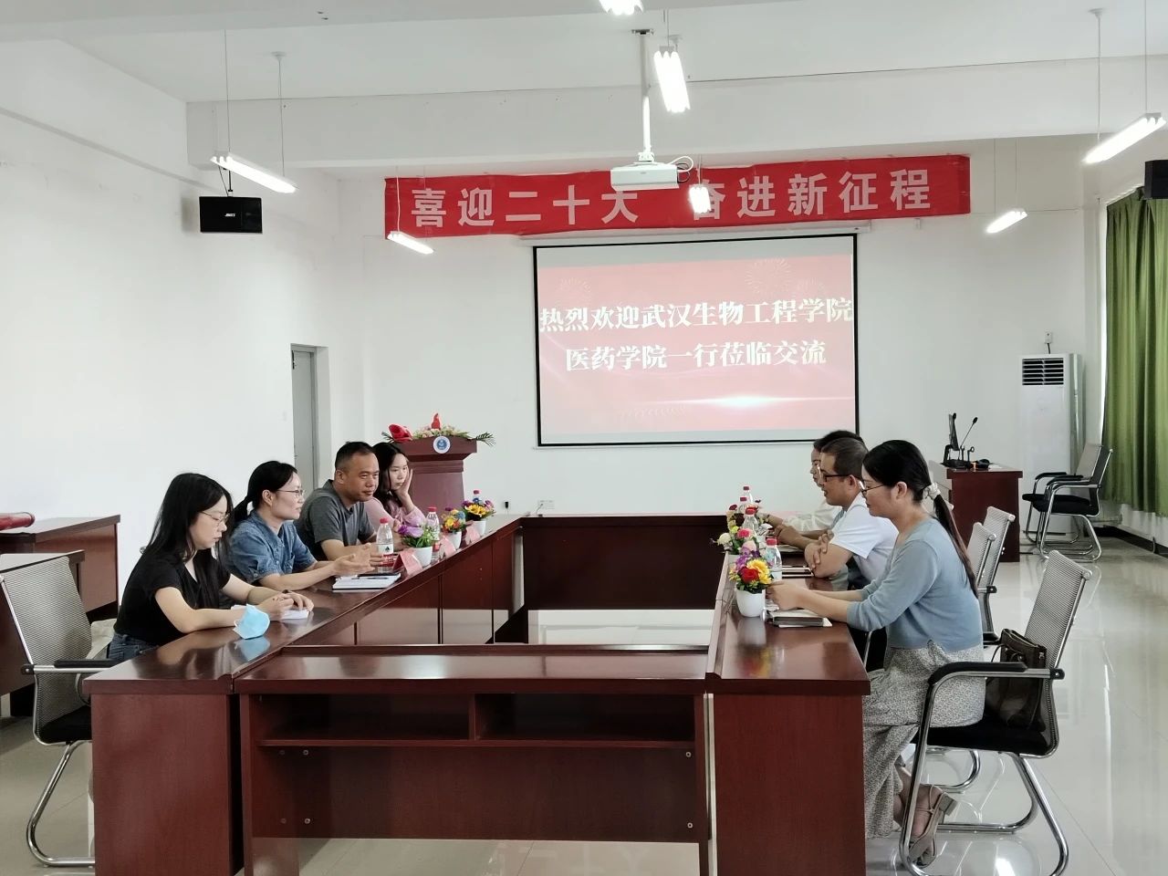2023年9月4日下午,武汉生物工程学院医药学院常务副院长黄帅一行到我院访问交流,随行的有医药学院尤园副院长,基础医学教研室阳丹主任和护理系邵勤文老师。这是武汉生物工程学院医药学院自去年第一次到我院参观访问交流后第二次到我院访问交流。yl6809永利集团党总支书记兼行政副院长高伟,副院长王忆娟、护理系付金苹老师和药学系张凡老师参加了座谈交流。