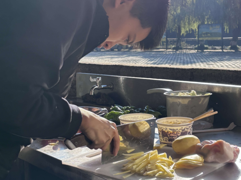 在绿林山餐厅的帮厨工作里,学生们分工明确,有条不紊地配合,体会到了“谁知盘中餐,粒粒皆辛苦”的艰辛和不易。