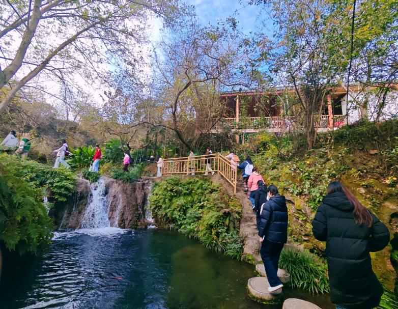 研学与生活实践双线并行,让活动的维度更加丰富。学子分批走进绿林寨、美人谷开展研学考察。在美人谷,大家沿着溪流行走,蹲在水边拍摄飞溅的瀑布和游弋的小鱼。大家感受乡村振兴和建设对地方发展的贡献和意义,用镜头传达对地方建设的赞美和支持。