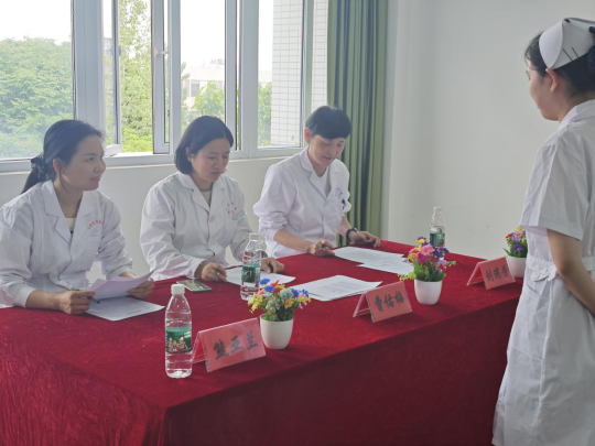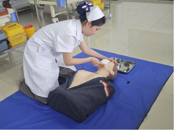 现场,6 - 402教室,喻莹、张羚月、龚琛三位评委严格评核选手心脏复苏技能;6 - 403教室,曹佑梅、熊亚兰、刘琼芳三位评委严格评核选手综合操作。选手们凭借扎实的专业知识和熟练的操作技能,在模拟突发心脏病、意外受伤等场景中,迅速做出初步诊断,准确实施急救措施,充分展现了护理专业学生的风采。